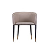 Embellish your dining room area with sophisticated design. Sagamore dining armchair is truly a distinctive design that stands out in every room. Its curvy shell crafted in solid wood and gently padded is giving you the comfort needed for long hours of dining and chatting. It is upholstered in a premium PU leather, while the conical legs have two tones, making the combination a beauty. A great choice for modern living.